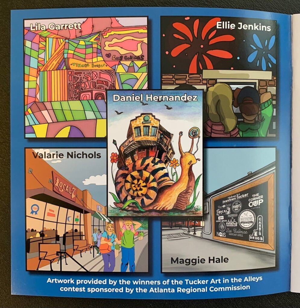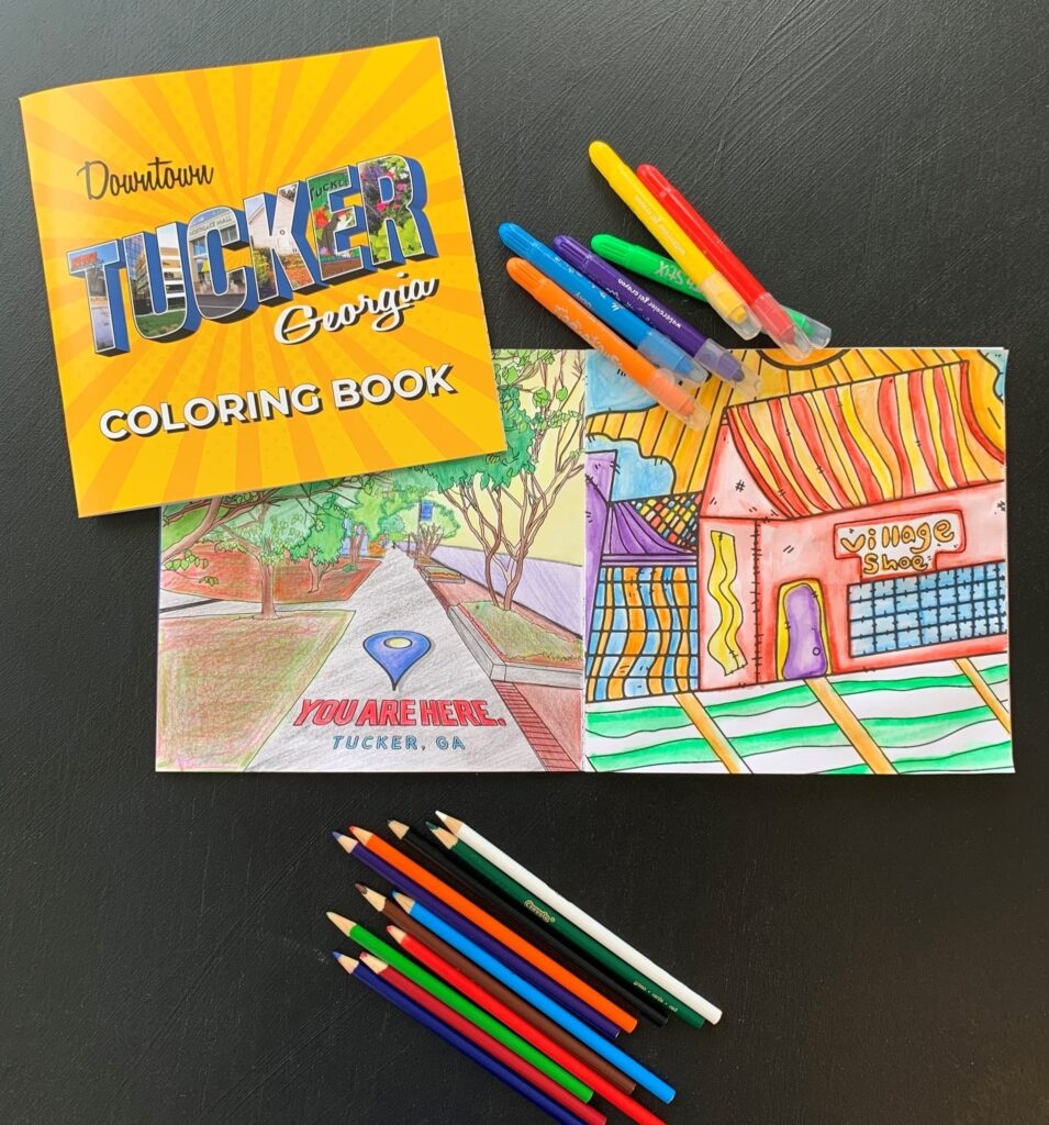 The public engagement portion of the project resulted in the production of a Downtown Tucker Coloring Book with art contributed by local artists, including students, and distributed to Downtown Tucker businesses.